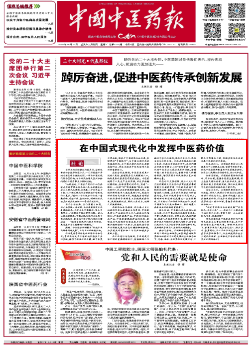 【中國中醫(yī)藥報社論】在中國式現(xiàn)代化中發(fā)揮中醫(yī)藥價值