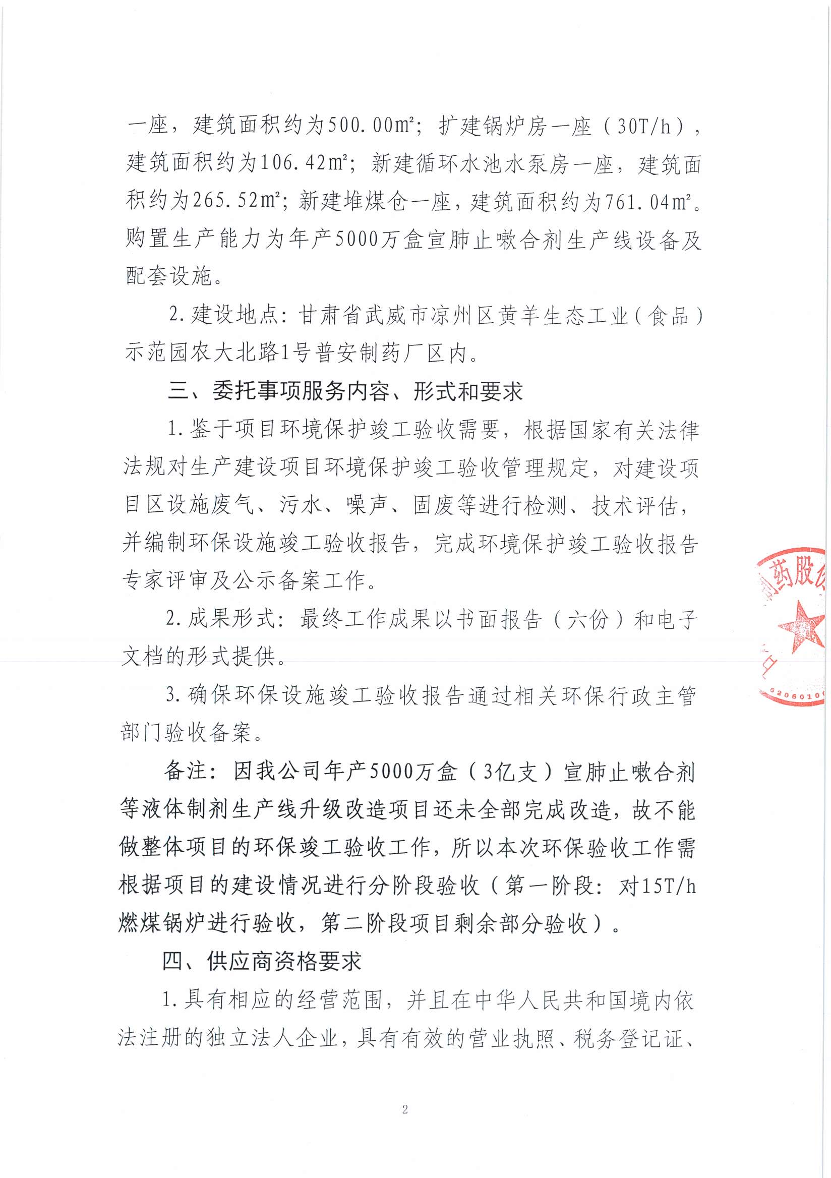 甘肅普安制藥股份有限公司年產(chǎn)5000萬盒(3億支)宣肺止嗽合劑等液體制劑生產(chǎn)線升級(jí)改造項(xiàng)目環(huán)評(píng)驗(yàn)收詢價(jià)公告