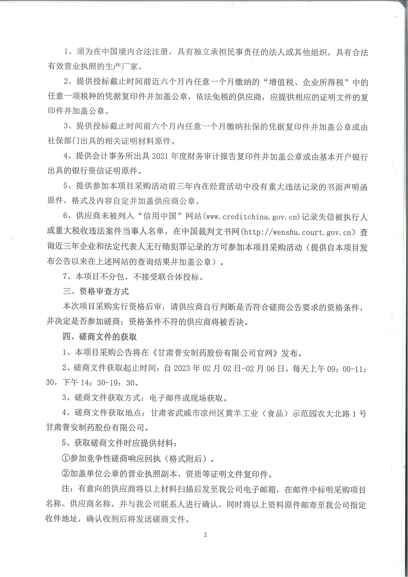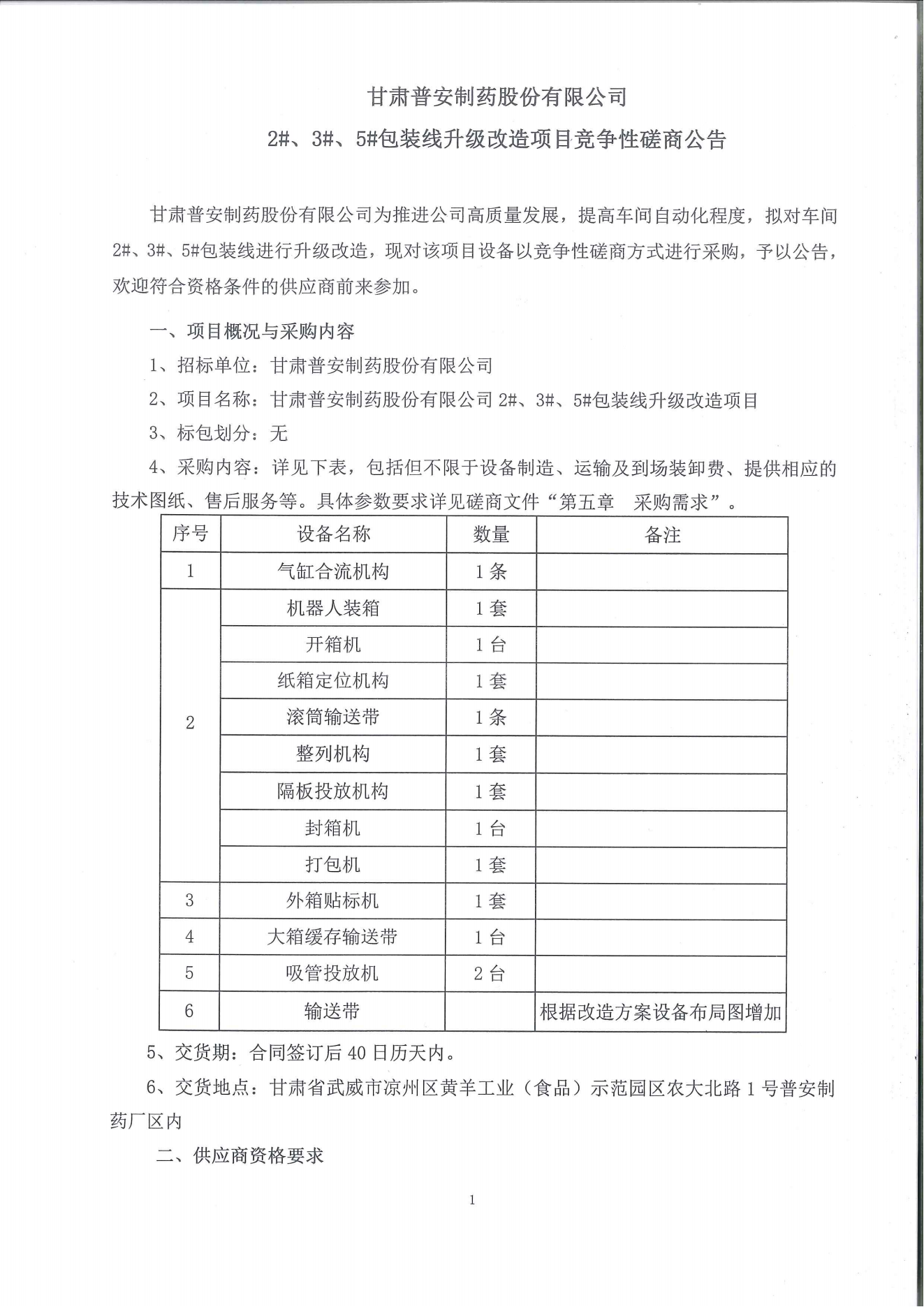 甘肅普安制藥股份有限公司 2#、3#、5#包裝線升級(jí)改造項(xiàng)目競(jìng)爭(zhēng)性磋商公告
