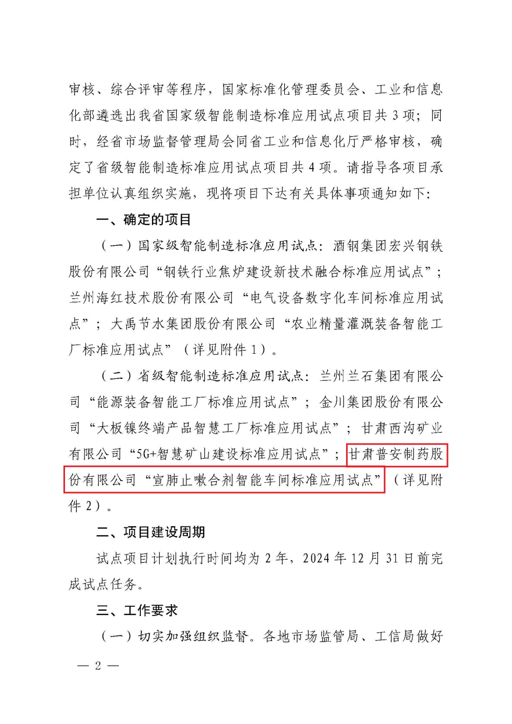“三抓三促”踐行中 ᅵ 【喜報】甘肅藥業(yè)集團普安制藥入選省級智能制造標(biāo)準應(yīng)用試點項目名單