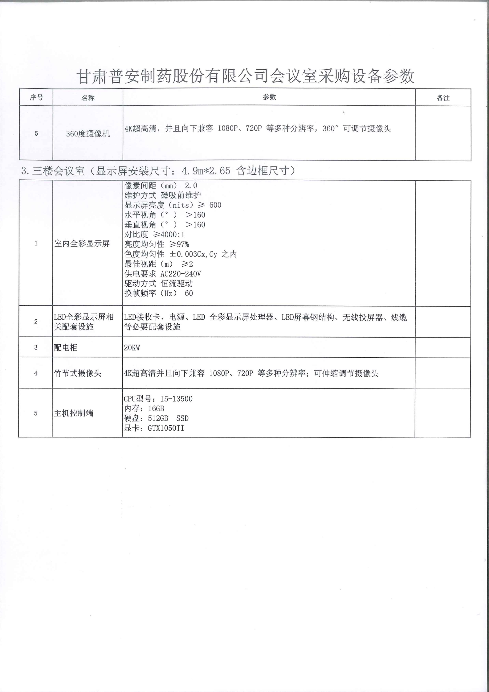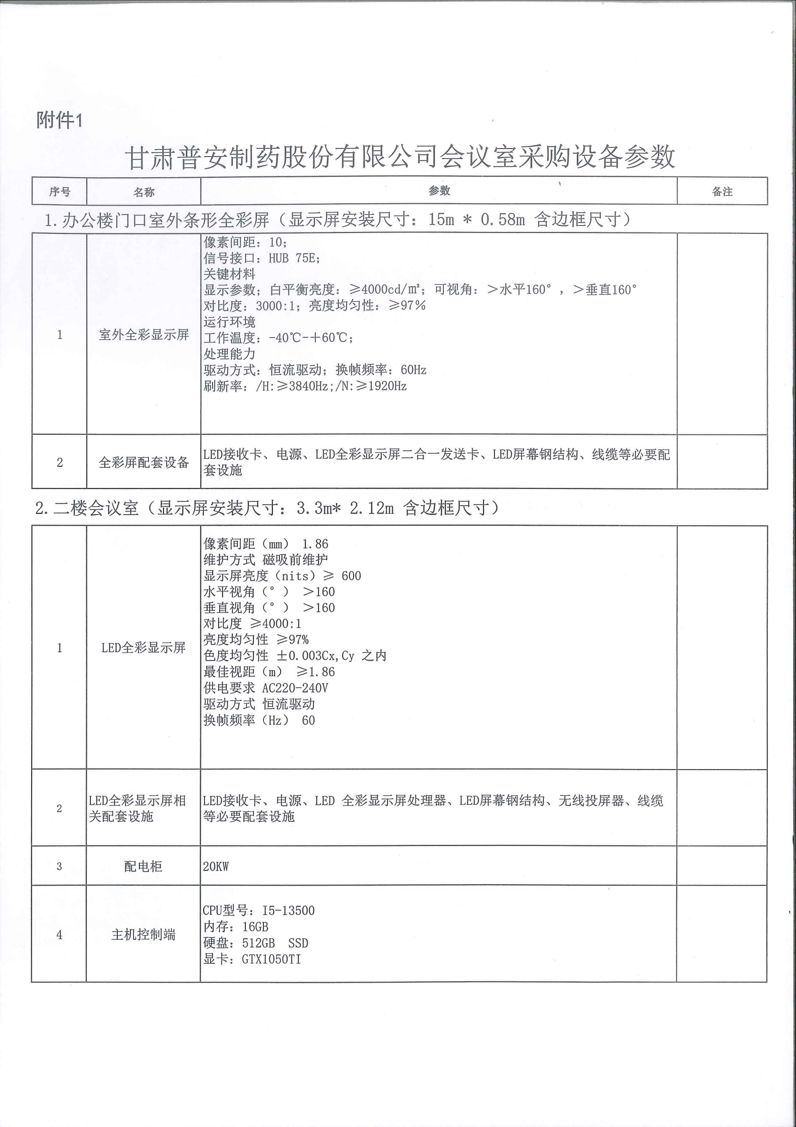 甘肅普安制藥股份有限公司會議室設(shè)備升級改造報價邀請公告