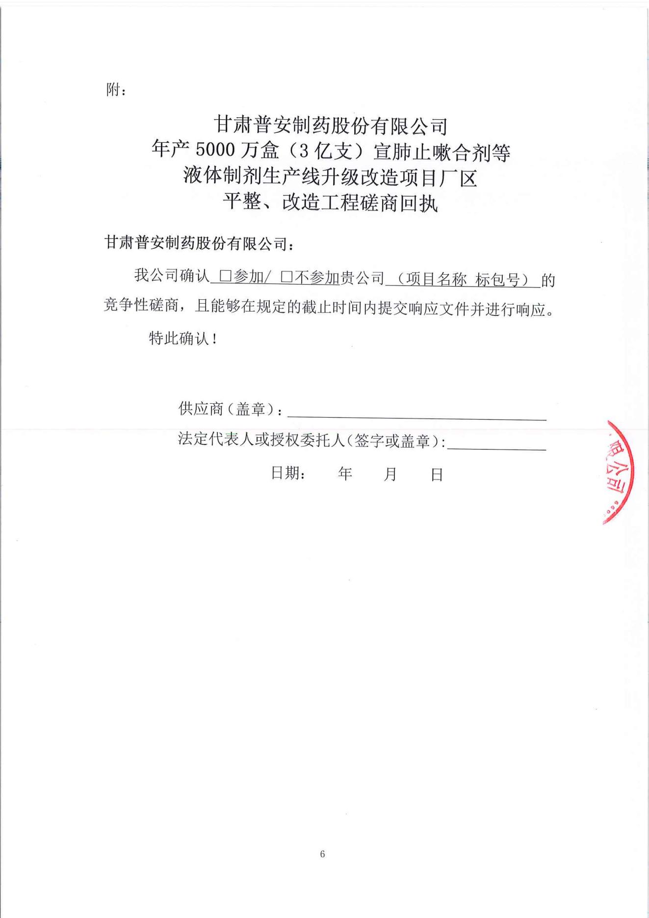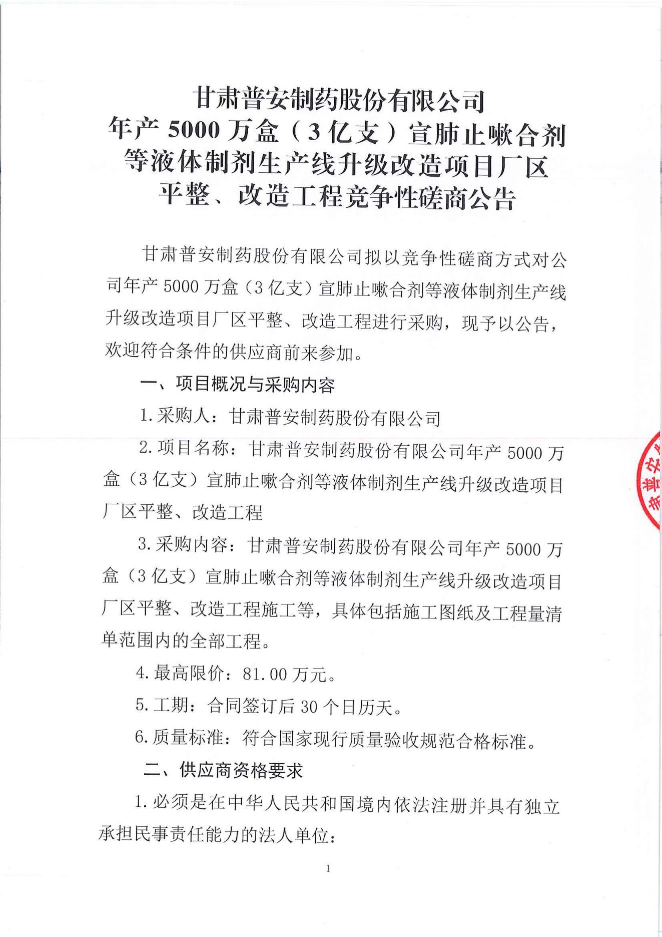 甘肅普安制藥股份有限公司年產(chǎn)5000萬盒(3億支)宣肺止嗽合劑等液體制劑生產(chǎn)線升級改造項目廠區(qū)平整、改造工程競爭性磋商公告