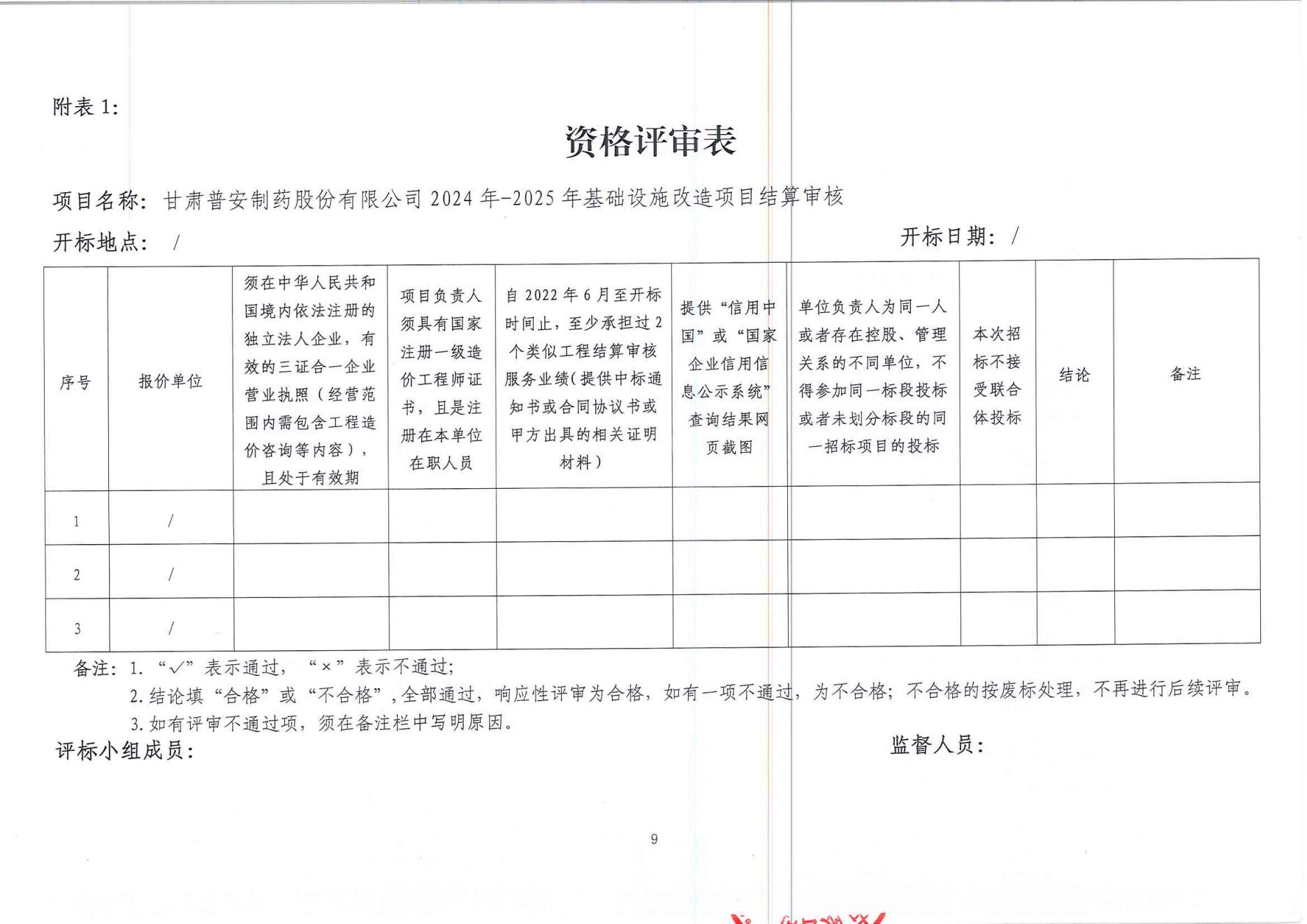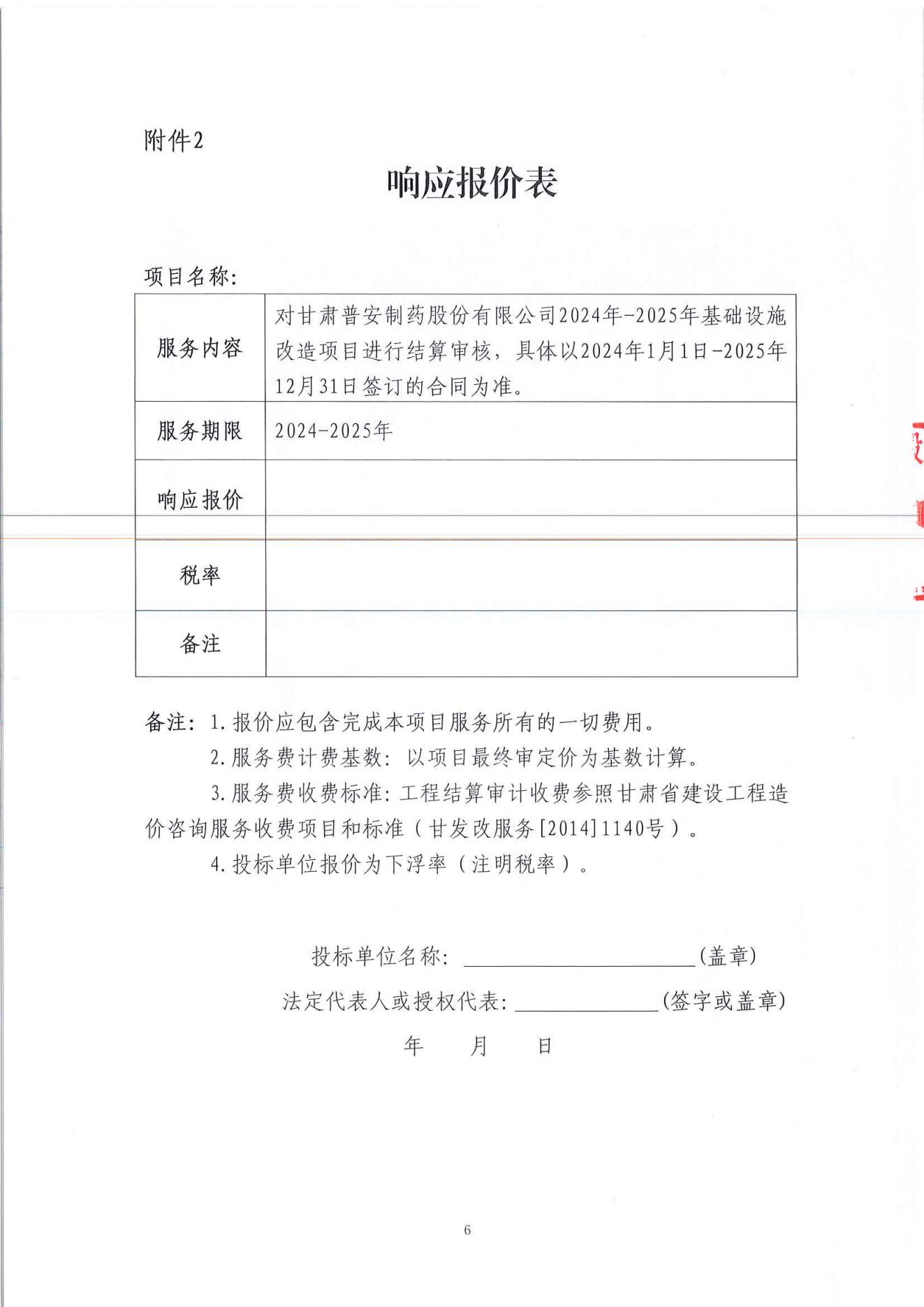 甘肅普安制藥股份有限公司2024年-2025年基礎(chǔ)設(shè)施改造項(xiàng)目結(jié)算審核服務(wù)招標(biāo)公告