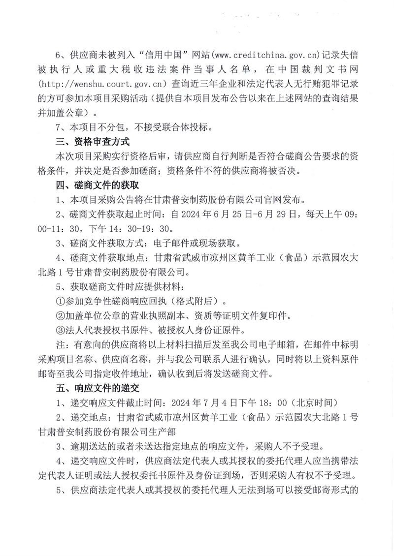 甘肅普安制藥股份有限公司2024年基礎設施改造項目鋁箔封口檢測機設備采購競爭性磋商公告