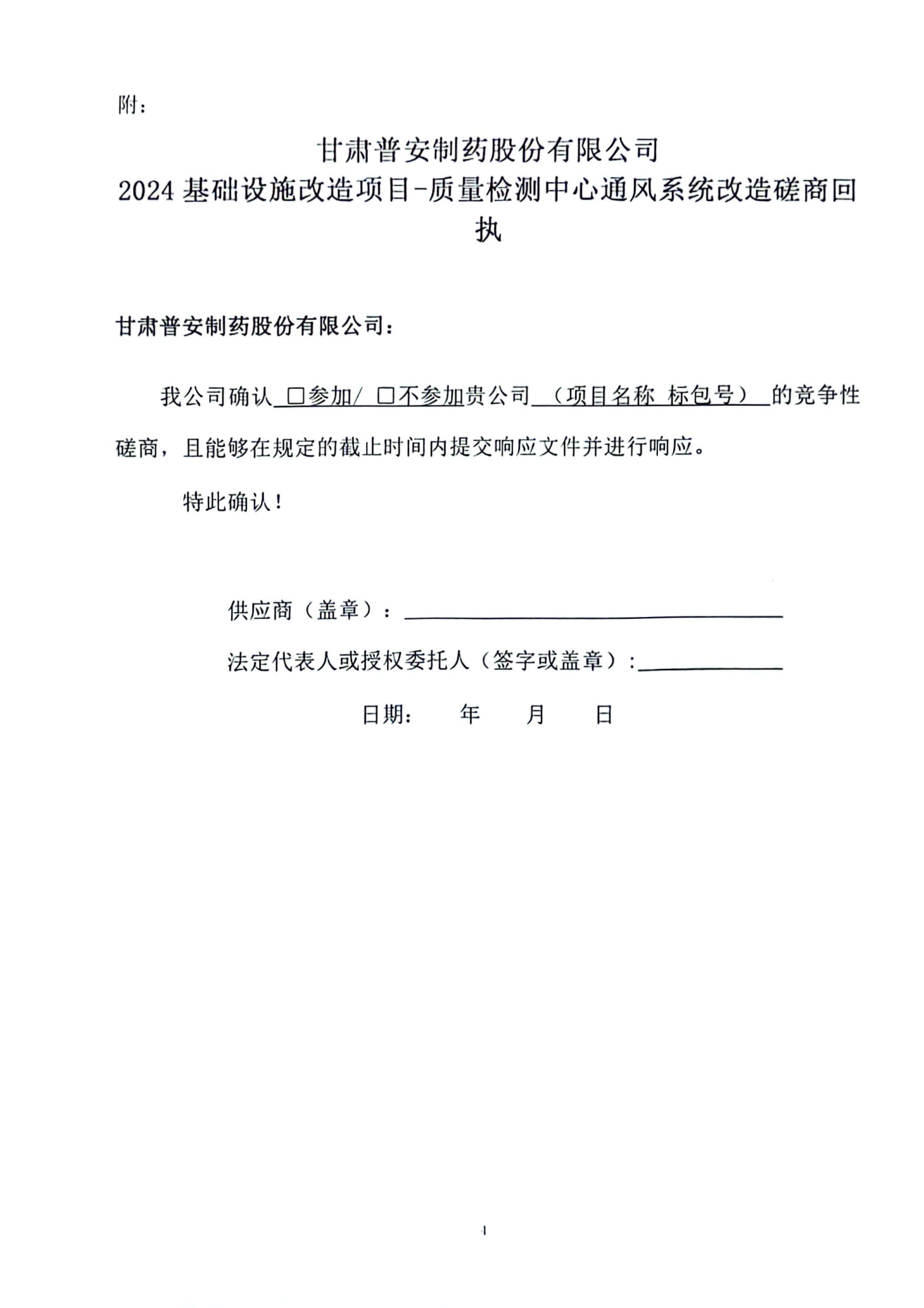 甘肅普安制藥股份有限公司2024年基礎(chǔ)設(shè)施改造項(xiàng)目-質(zhì)量檢測(cè)中心通風(fēng)系統(tǒng)改造競(jìng)爭(zhēng)性磋商公告