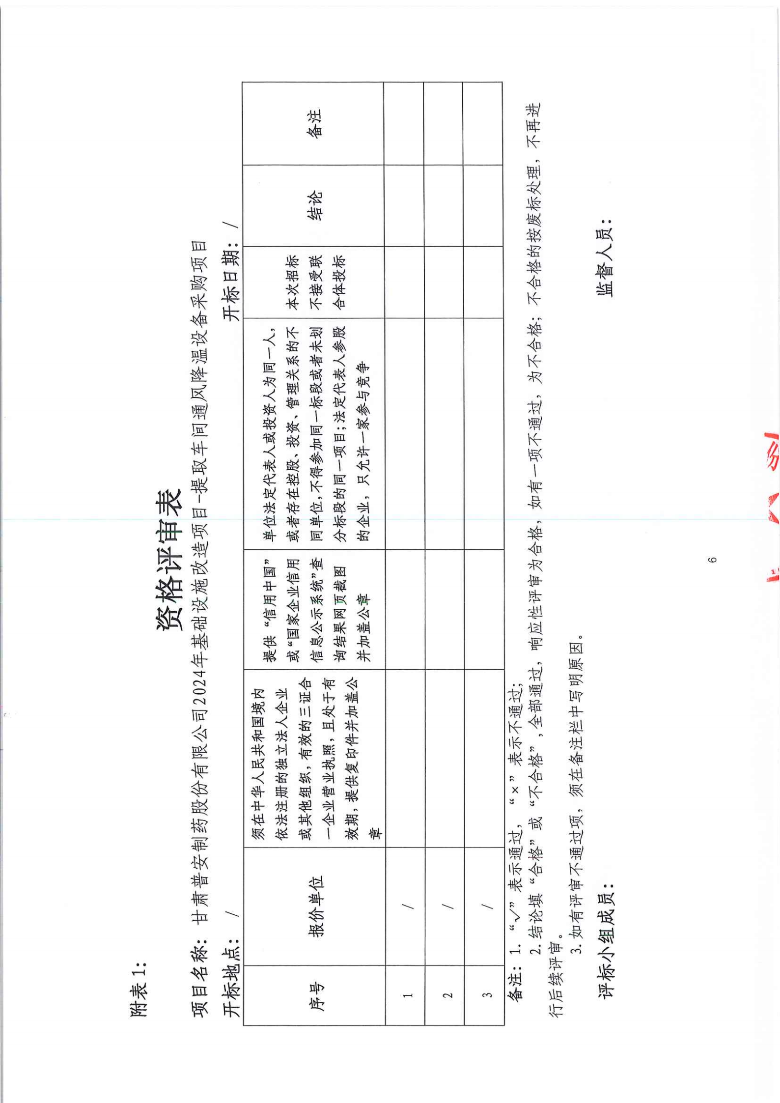 甘肅普安制藥股份有限公司2024年基礎(chǔ)設(shè)施改造項(xiàng)目-提取車間通風(fēng)設(shè)備采購(gòu)項(xiàng)目招標(biāo)公告