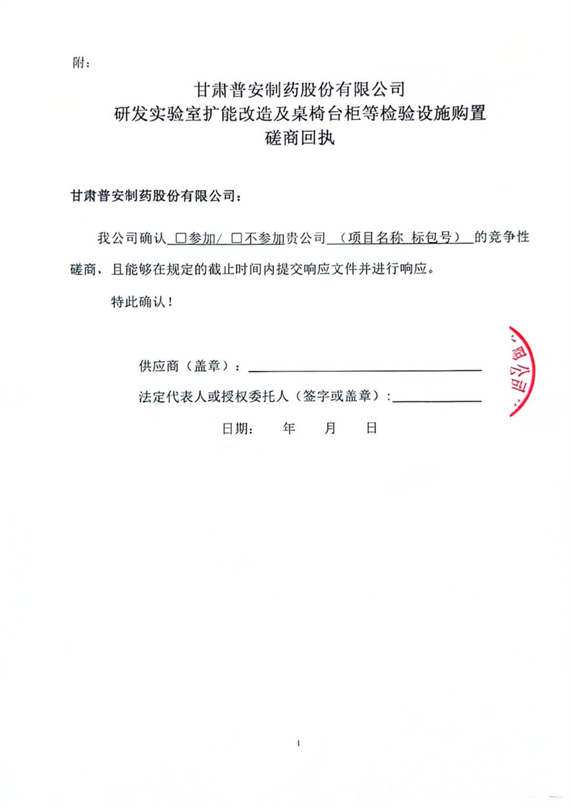 甘肅普安制藥股份有限公司研發(fā)實(shí)驗(yàn)室擴(kuò)能改造及桌椅臺(tái)柜等檢驗(yàn)設(shè)施購(gòu)置競(jìng)爭(zhēng)性磋商公告