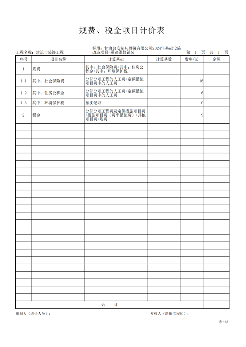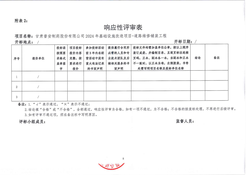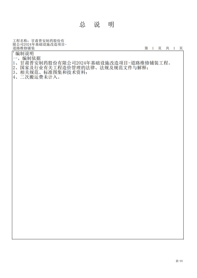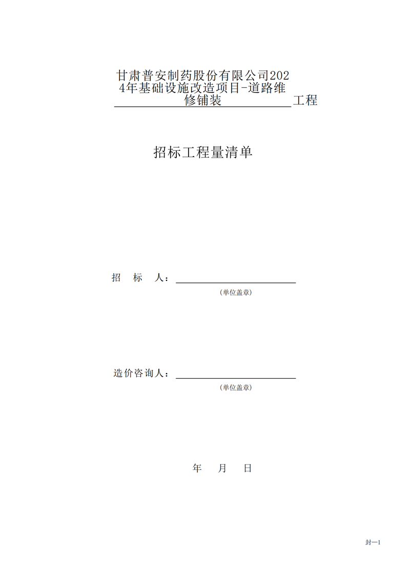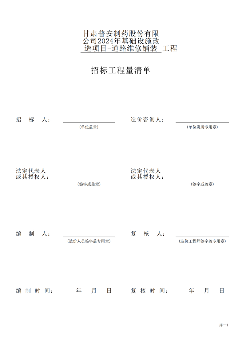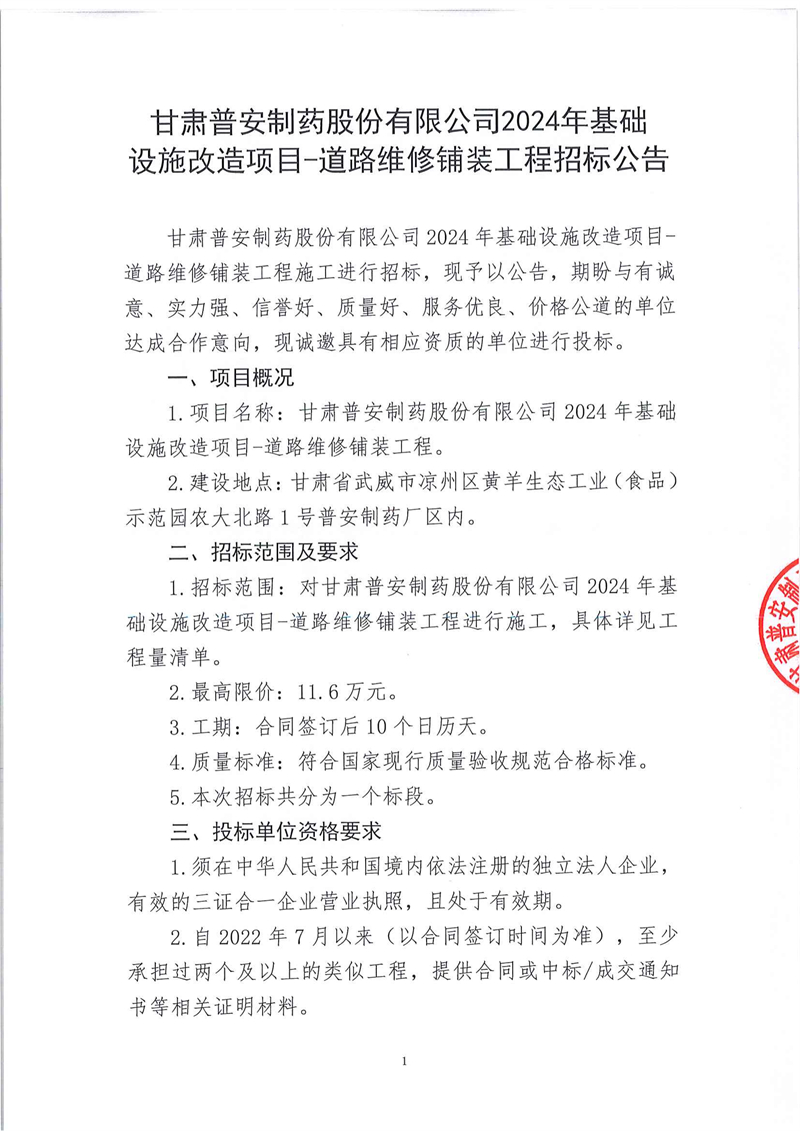 甘肅普安制藥股份有限公司2024年基礎(chǔ)設(shè)施改造項(xiàng)目-道路維修鋪裝工程招標(biāo)公告