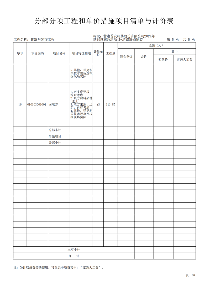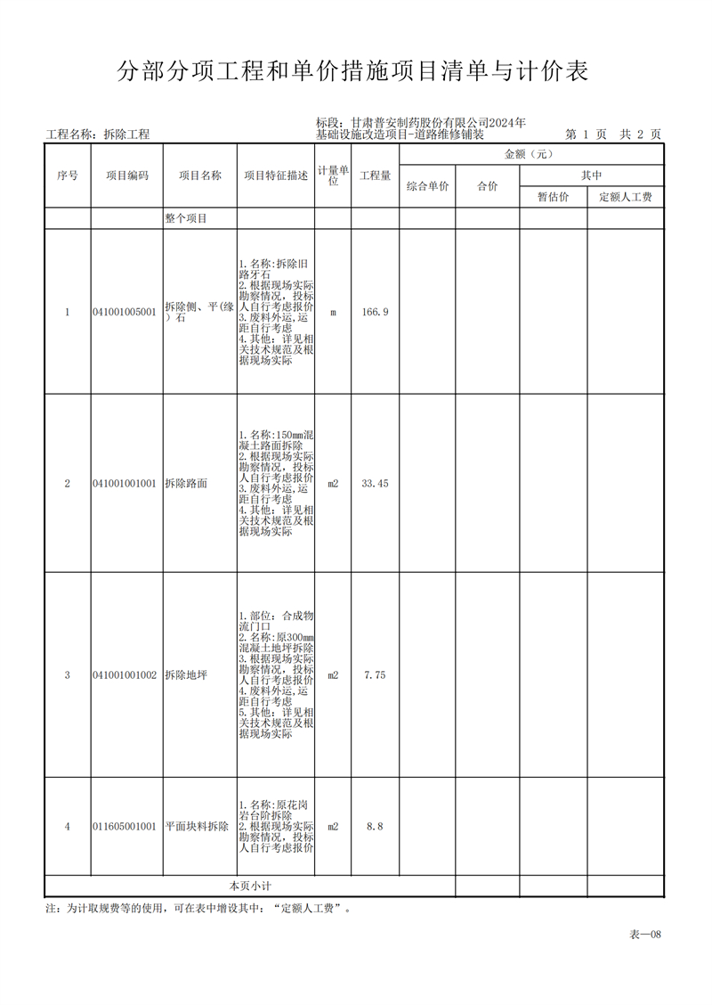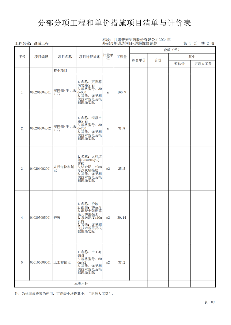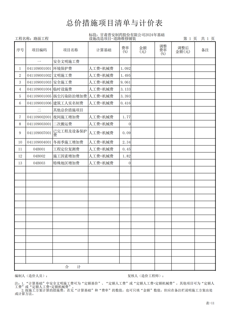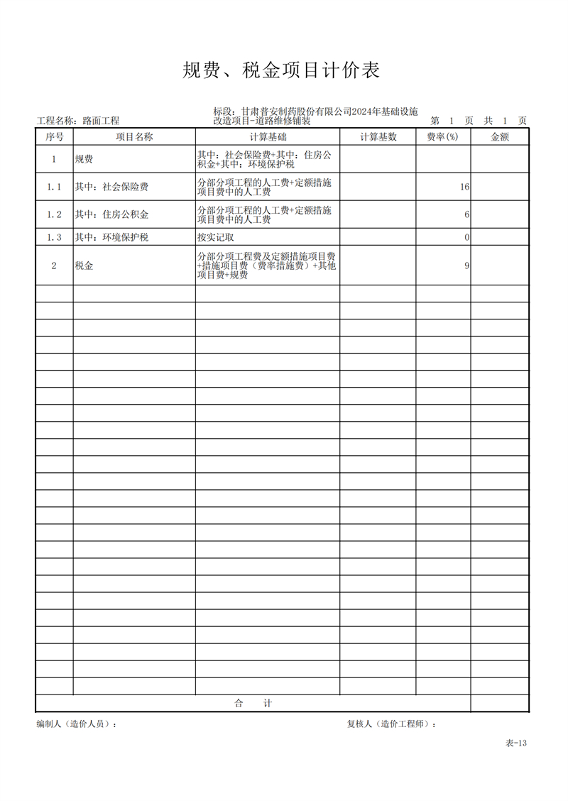 甘肅普安制藥股份有限公司2024年基礎(chǔ)設(shè)施改造項(xiàng)目-道路維修鋪裝工程招標(biāo)公告
