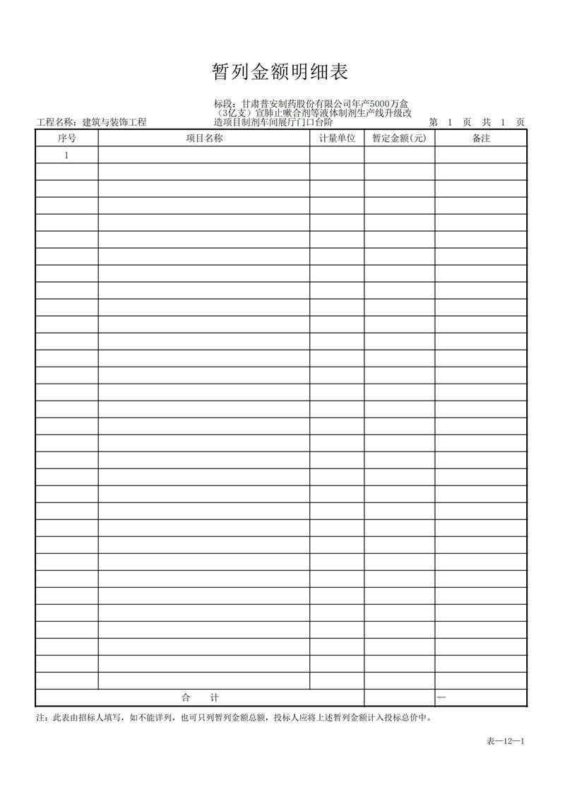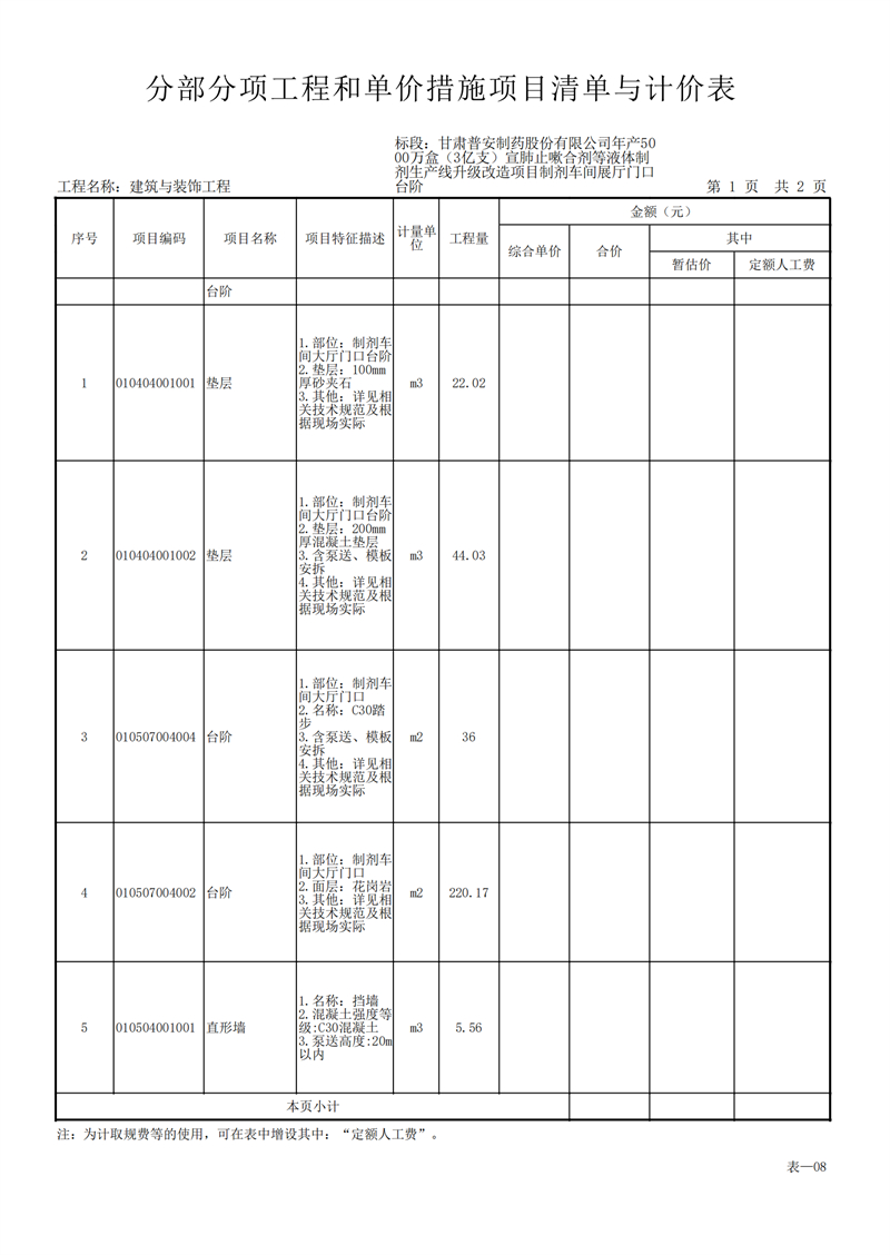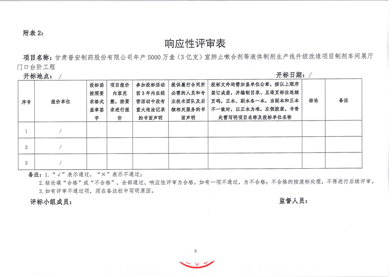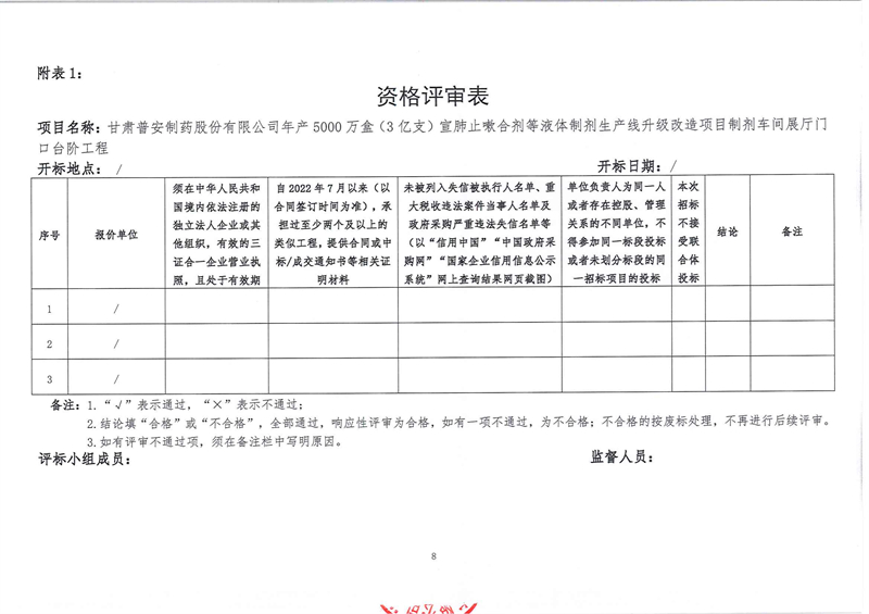甘肅普安制藥股份有限公司年產(chǎn)5000萬盒(3億支)宣肺止嗽合劑等液體制劑生產(chǎn)線升級改造項目制劑車間展廳門口臺階工程招標公告