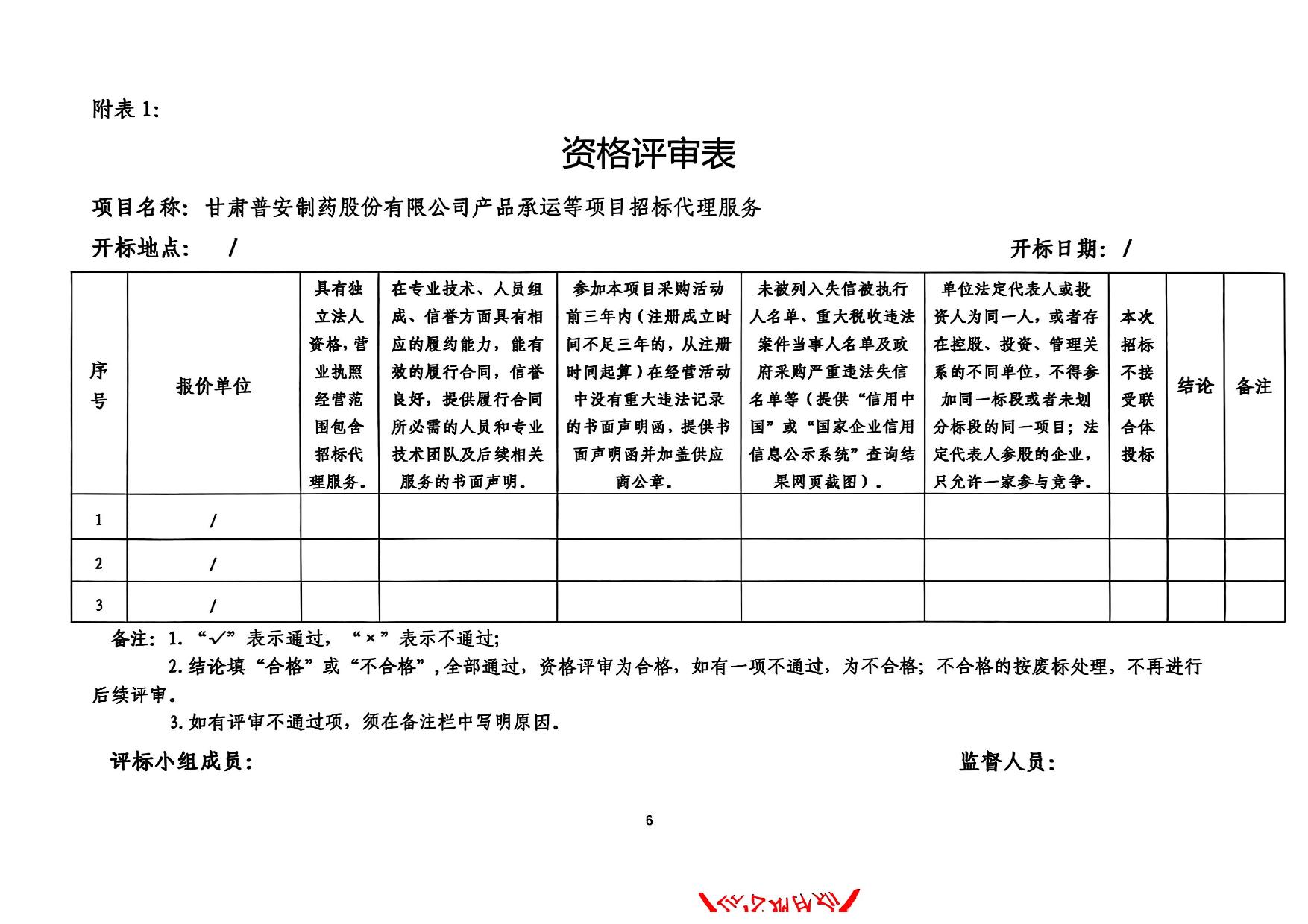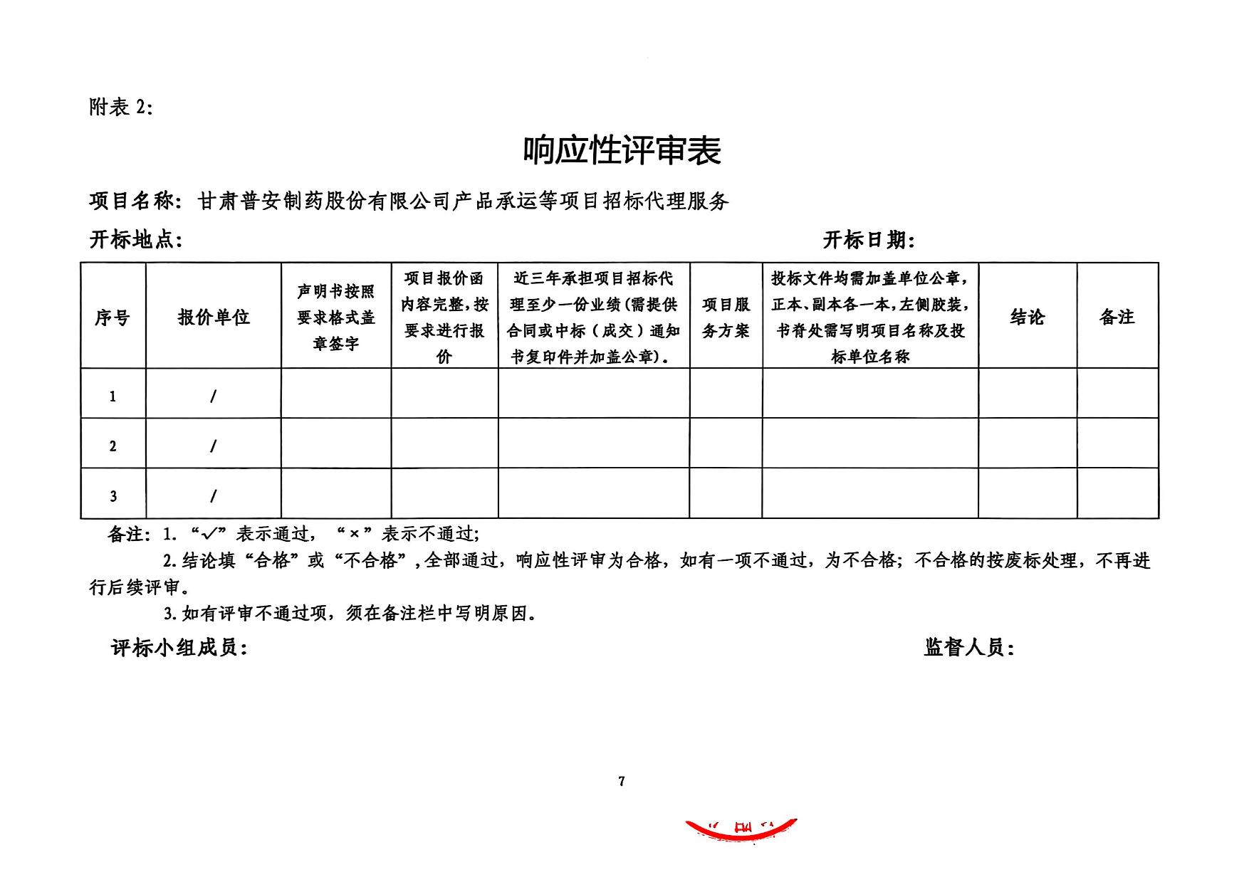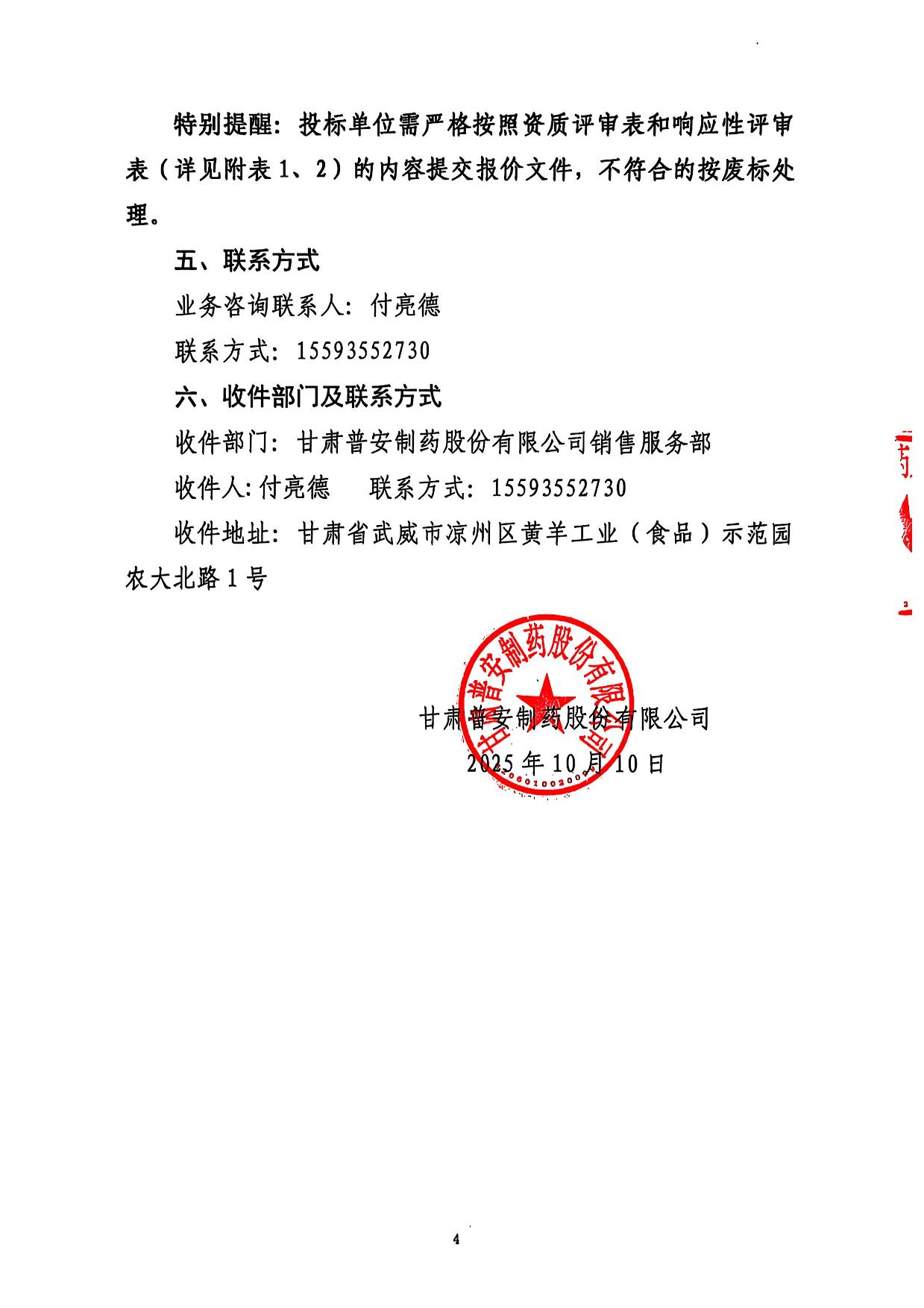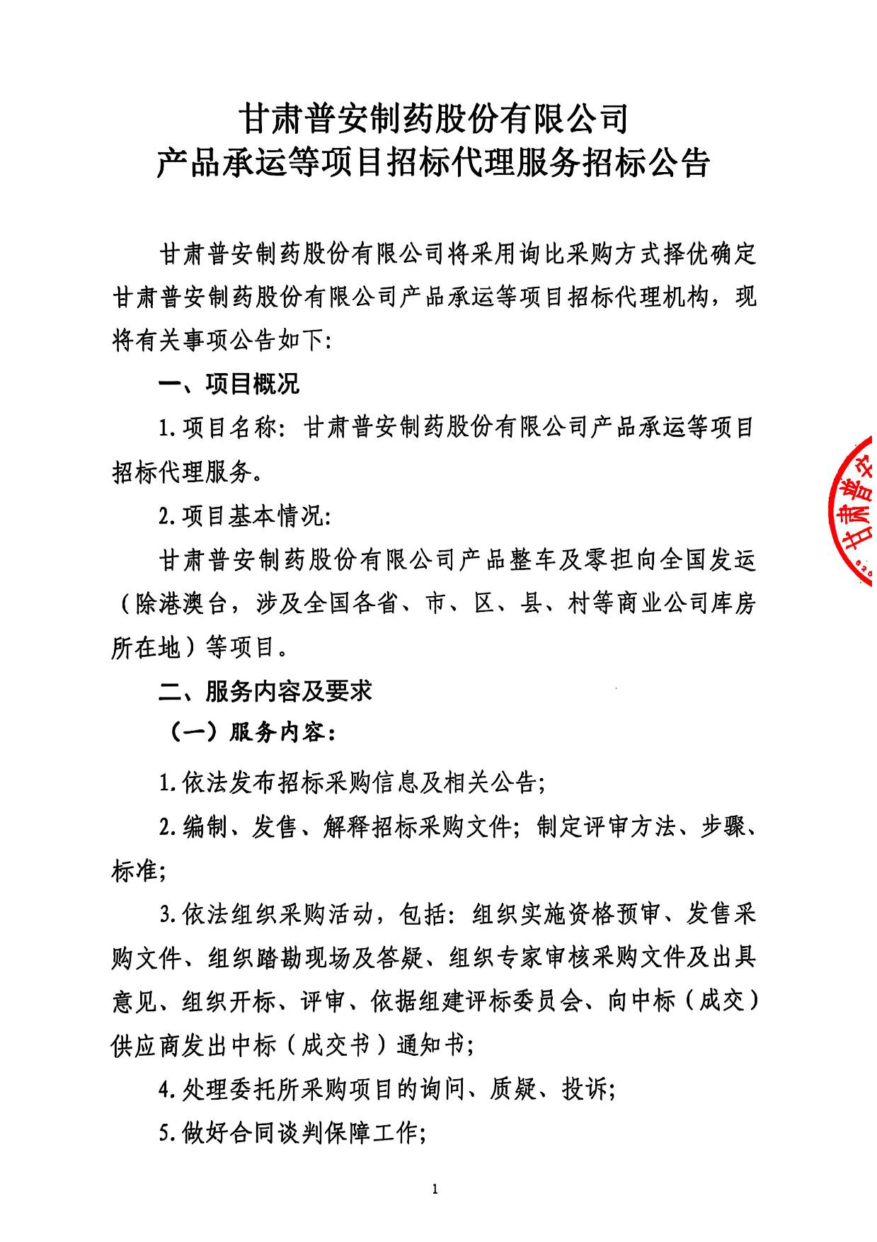 甘肅普安制藥股份有限公司產(chǎn)品承運等項目招標代理服務招標公告